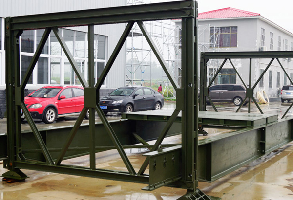 具有构造简单、运输便当、架设快捷、载重量大、互换性好、顺应性强的特性。"HD200"型装配式公路钢桥增加了桁架高度,进步了承载才能,加强了稳定性能,增加了疲倦寿命,进步了牢靠度。与321型钢桥相比,在相同组合状况下,强度进步了33%,刚度进步了2.3倍。适用范围单车道桥面净宽4.2M,组合跨径9.14-76.2M,双车道桥面净宽7.4M,组合跨径9.14-57.91M.